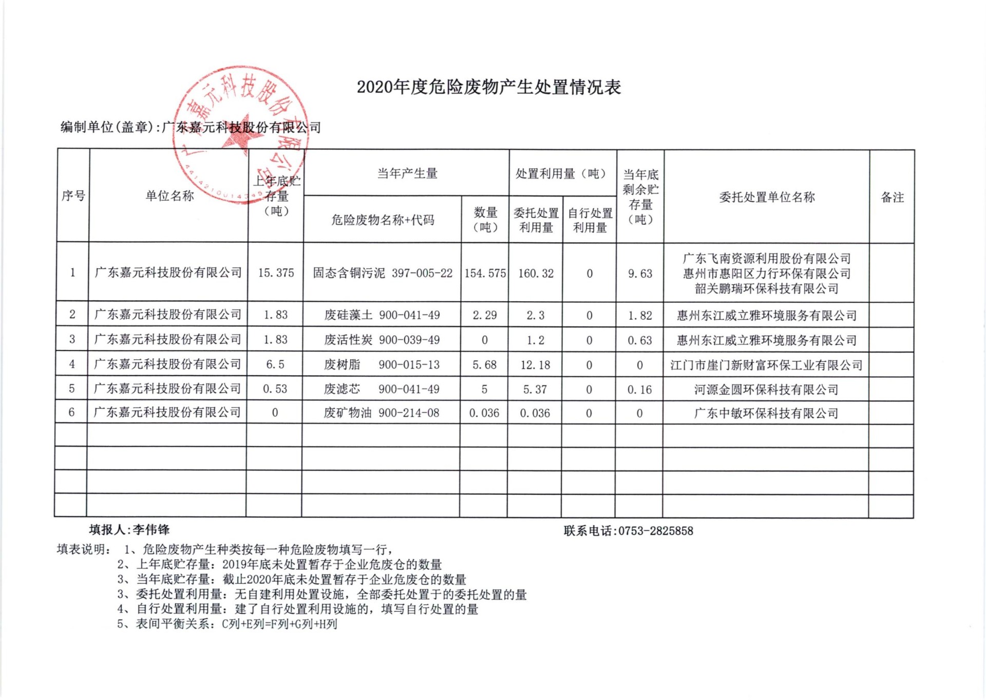 廣東嘉元科技股份有限公司現將國家排污許可證中固廢污染防治信息進行公示。