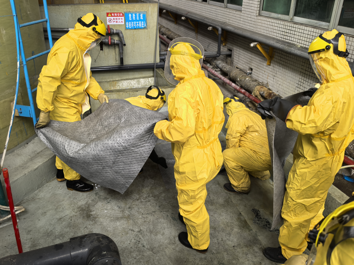 在演練的硫酸泄漏事故發(fā)生后,各相關(guān)部門緊密協(xié)作,立即啟動突發(fā)環(huán)境事件應(yīng)急預(yù)案,警戒疏散組立即趕到現(xiàn)場,對周邊人員進(jìn)行緊急疏散,并拉起警戒線;搶險(xiǎn)救援組身著專業(yè)的防護(hù)裝備,準(zhǔn)確迅速地切斷了污染源,利用應(yīng)急沙袋、事故水池等應(yīng)急設(shè)施,及時(shí)有效地控制了污染的擴(kuò)散,阻止了事態(tài)的進(jìn)一步蔓延,成功地處置了突發(fā)環(huán)境事件。
