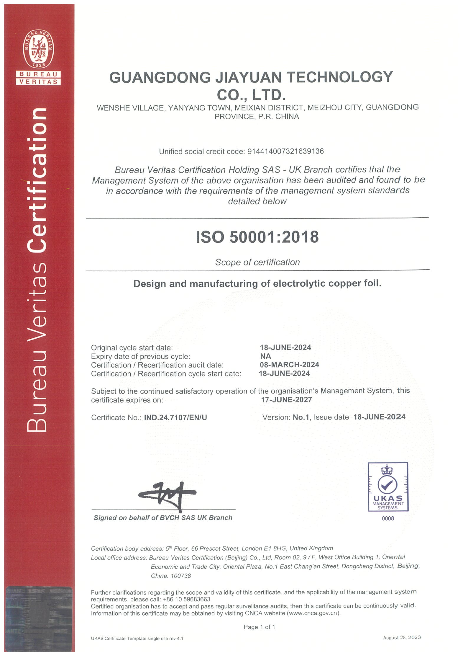 ISO 50001:2018能源管理體系證書(shū)