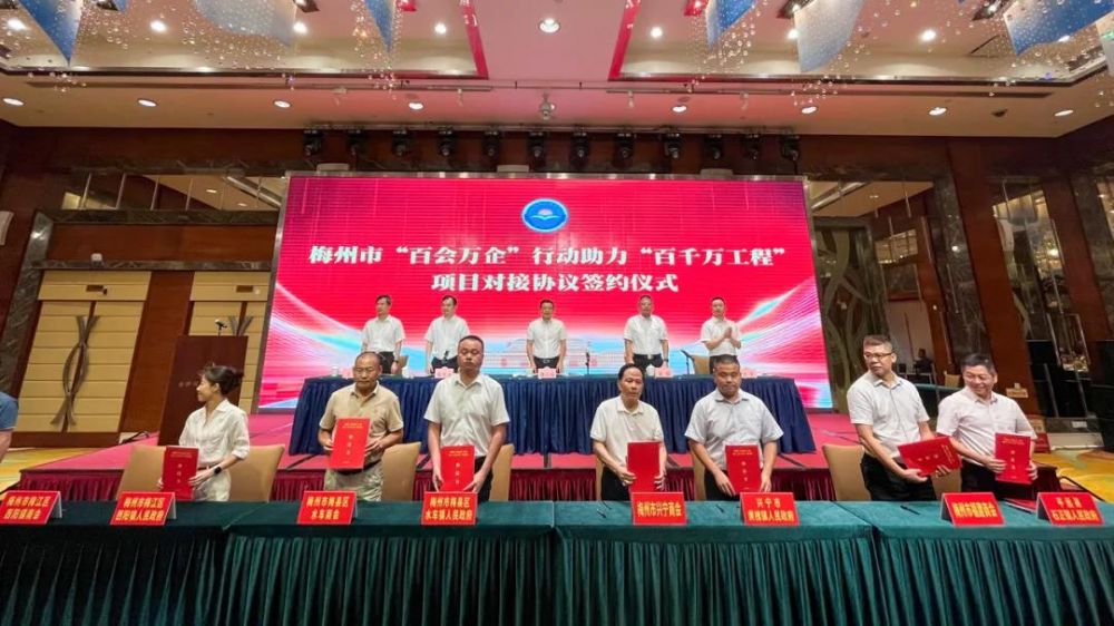 會(huì)議期間,8家商協(xié)會(huì)圍繞“助推培育‘四上’企業(yè)、壯大縣(鎮(zhèn))域經(jīng)濟(jì)(招商引資)、消費(fèi)幫扶、公益慈善、綠美梅州”五大方面與8個(gè)鎮(zhèn)(街)政府舉行梅州市“百會(huì)萬企”行動(dòng)助力“百千萬工程”項(xiàng)目對(duì)接協(xié)議現(xiàn)場(chǎng)簽約儀式,預(yù)計(jì)三年簽約投入金額共計(jì)5.3593億元;與會(huì)人員觀看梅州招商推介宣傳片;實(shí)地參觀考察梅縣區(qū)水車鎮(zhèn)白沙村美麗鄉(xiāng)村建設(shè)項(xiàng)目和梅州智慧柚柚創(chuàng)意園,現(xiàn)場(chǎng)感受梅州實(shí)施“百千萬工程”取得的扎實(shí)成效。